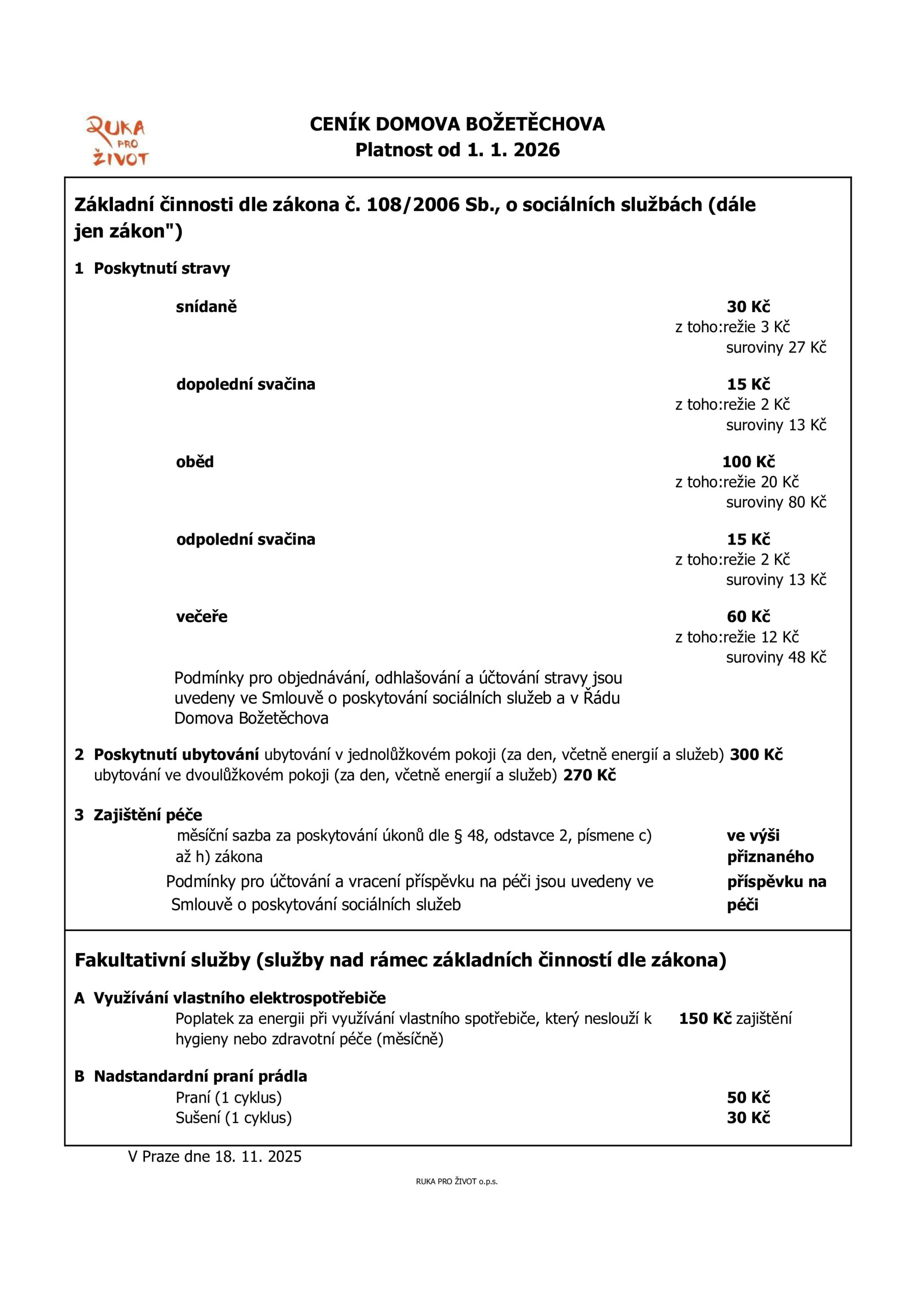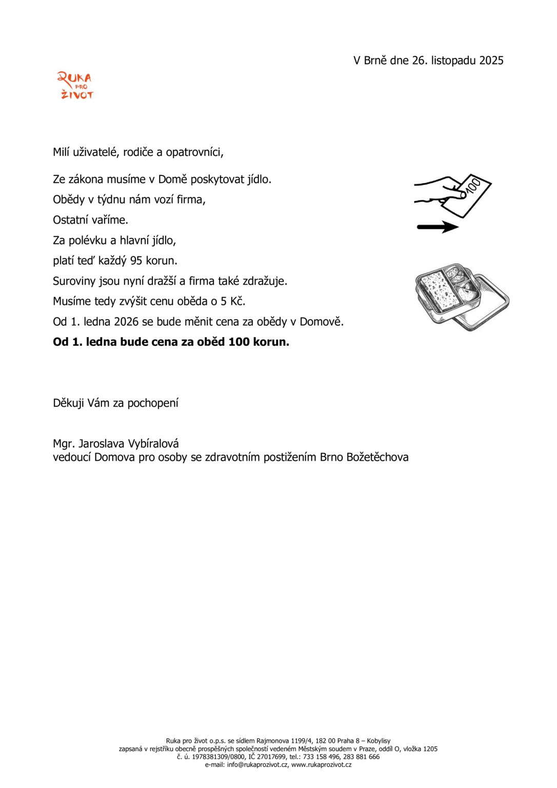 Změna cen obědů v Domově Božetěchova
